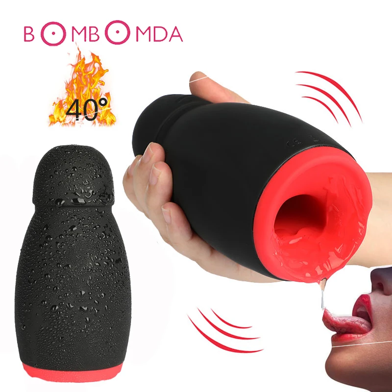 Special Discount Automatic Heating Male Masturbator Mouth Oral Pussy Licking Toys Electric Tongue Sucking Masturbati